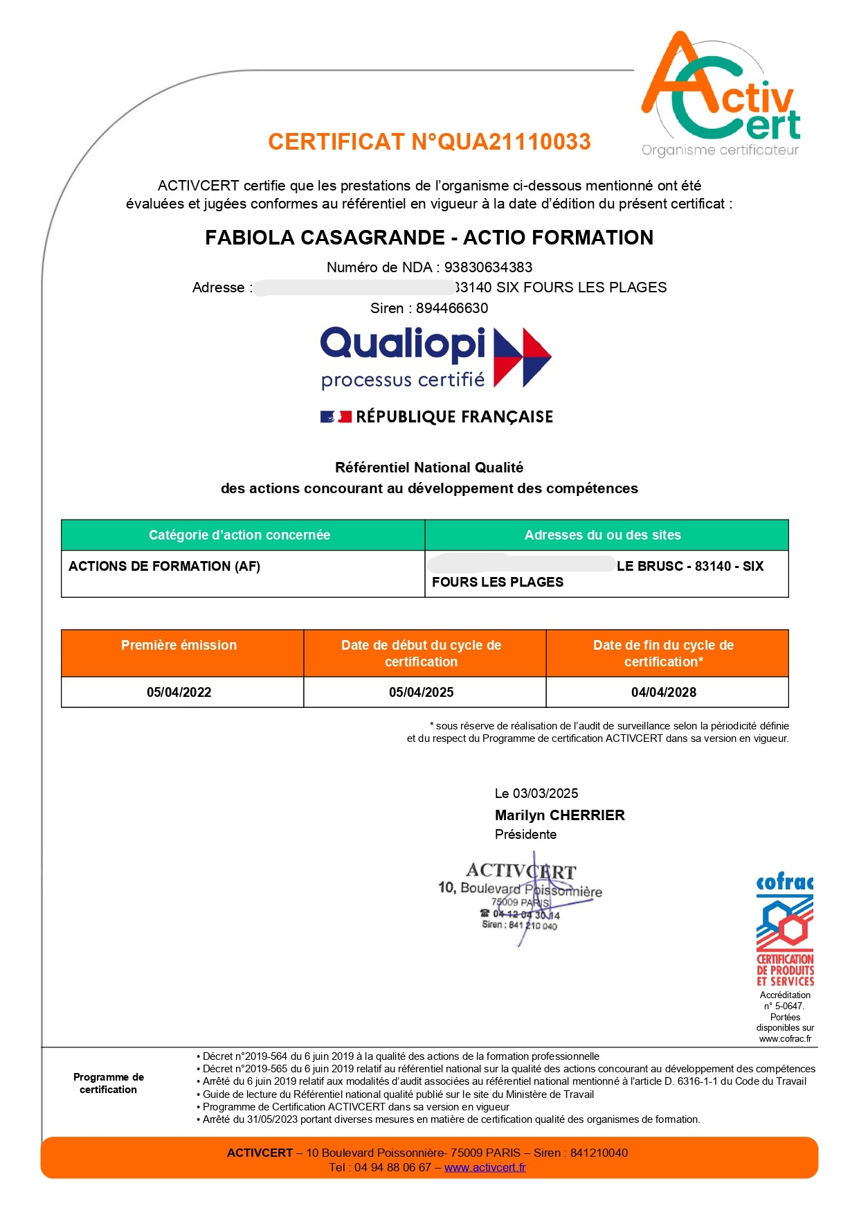 Nous sommes certifiés QUALIOPI depuis le 5 avril 2022.